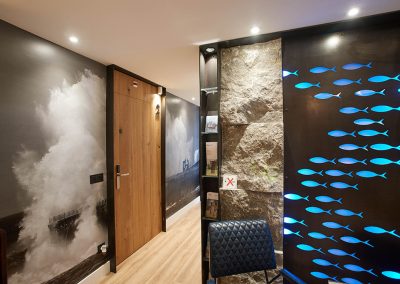 Only one room does not have a balcony but it has a great panoramic view of the sea.